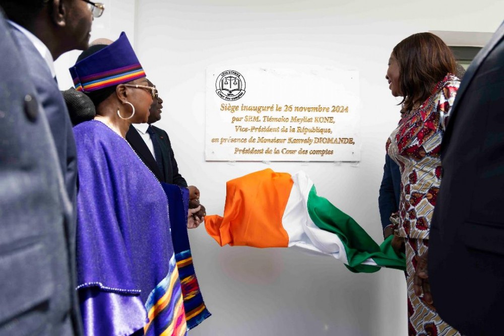 Inauguration du siège de la Cour des comptes : Le Vice-président de la République dévoile la plaque inaugurale de l’édifice.